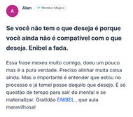 Estar no MM é um grande privilegio, pois aqui tive varias e varias oportunidades de encontrar comigo mesma. Sou muito grata pela vida da Enibel, pois de forma tão clara e tão leve ela nos ensina as leis que regem o universo.