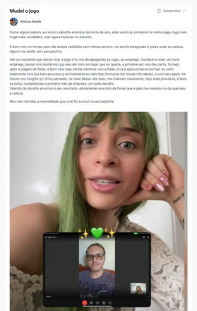 Existe também um espaço vivo de troca, onde você pode compartilhar dúvidas, relatos, interage com outros membros e acompanha experiências reais ao longo do caminho.